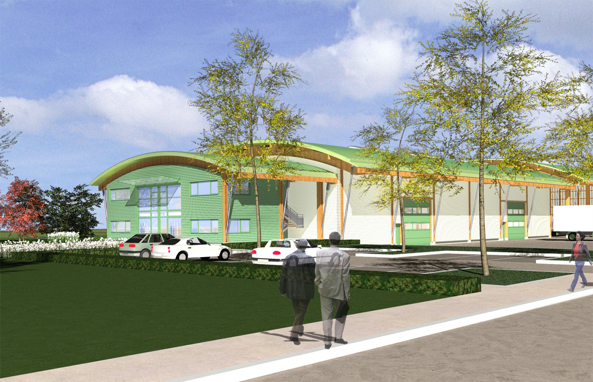 Le projet concerne la réalisation d’un entrepôt de stockage pour l’entreprise SAS Roland CHATEAU sur un terrain d’une superficie de 21 433 m2. Ce terrain, vide de toute construction, s’ouvre sur son petit côté sur la rue de Milly, pour descendre en pente douce parallèlement à la voie nouvelle. Le projet se compose d’un bâtiment de dépôt et d'un auvent de 84,50 m de long avec une hauteur maximale de 11m inscrit dans la pente générale du terrain. Ainsi, une personne à mobilité réduite peut accéder au bâtiment dans chacune des zones tout le long de la construction. Il est complété en partie haute du terrain, face à la rue de Milly par un bâtiment contigu au bâtiment de stockage de volumétrie plus réduite et regroupant un hall d’accueil, des bureaux, une zone d'exposition et une zone plus particulièrement réservée au personnel travaillant dans l’entrepôt. Un accès direct le long des locaux du personnel a été créé entre la zone d'accueil du public et l'entrepôt. Bien que la zone réservée au public soit un bâtiment singulier par rapport aux autres constructions, le auvent et la zone de dépôt sont deux constructions d'échelles différentes. Ainsi on distingue trois constructions accolées apportant une variété dans le paysage tout en évitant un aspect monolithique de l'ensemble afin de favoriser son insertion dans le site. Une attention particulière a été portée sur la végétalisation du terrain et ses abords. Les eaux pluviales sont infiltrées sur la parcelle conformément à la réglementation en vigueur par l'intermédiaire de noues paysagères et de bassins d'infiltration. Les différentes zones de stationnement sont également largement plantées. Enfin un soin particulier est apporté aux matériaux et aux principes constructifs. Les façades principales sont revêtues de bardage bois et la structure est en bois lamellée collée. |